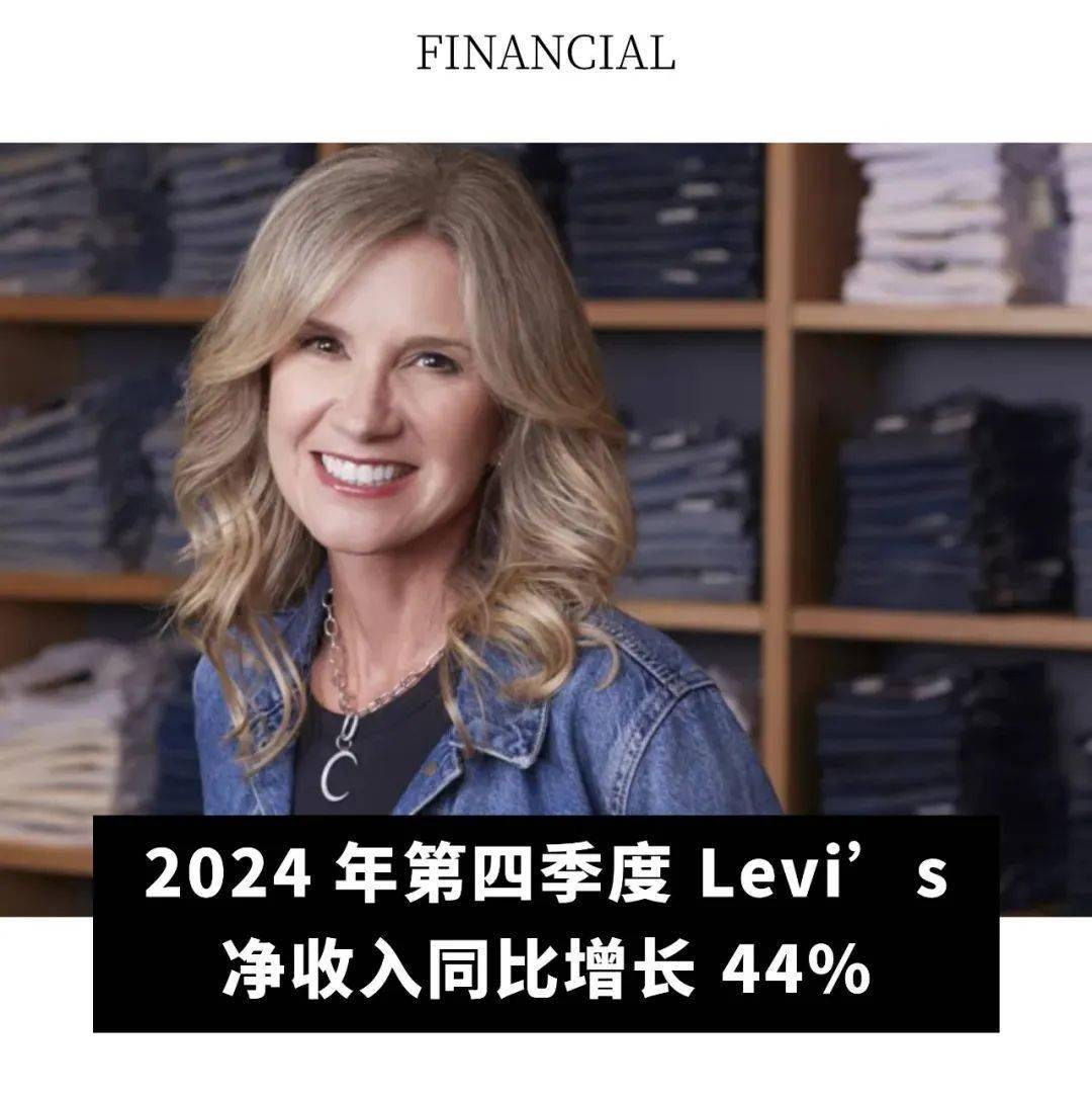 Levi’s 近日释出最新财务业绩。自首席执行官 Michelle Gass 执掌 Levi’s 一年后,公司在 2024 年进行了重组,并将实现更高的销售额和更好的利润率。数据显示,第四季度净收入从去年同期的 1.27 亿美元(合 32 美分)增长 44% 至 1.83 亿美元(合 46 美分)。据雅虎财经报道,调整后的每股收益为 50 美分,比分析师预测的 48 美分高出 2 美分。截至 12 月 1 日的季度,正值假日购物高峰期,收入增长 12%,达到 18 亿美元。有机收入(即剔除外汇汇率、资产剥离和日历变化的影响)增长了 8%。大部分有机增长来自美洲,销售额增长 9%,达到 9.95 亿美元,欧洲增长 6%,达到 4.34 亿美元,亚洲增长 9%,达到 2.86 亿美元。